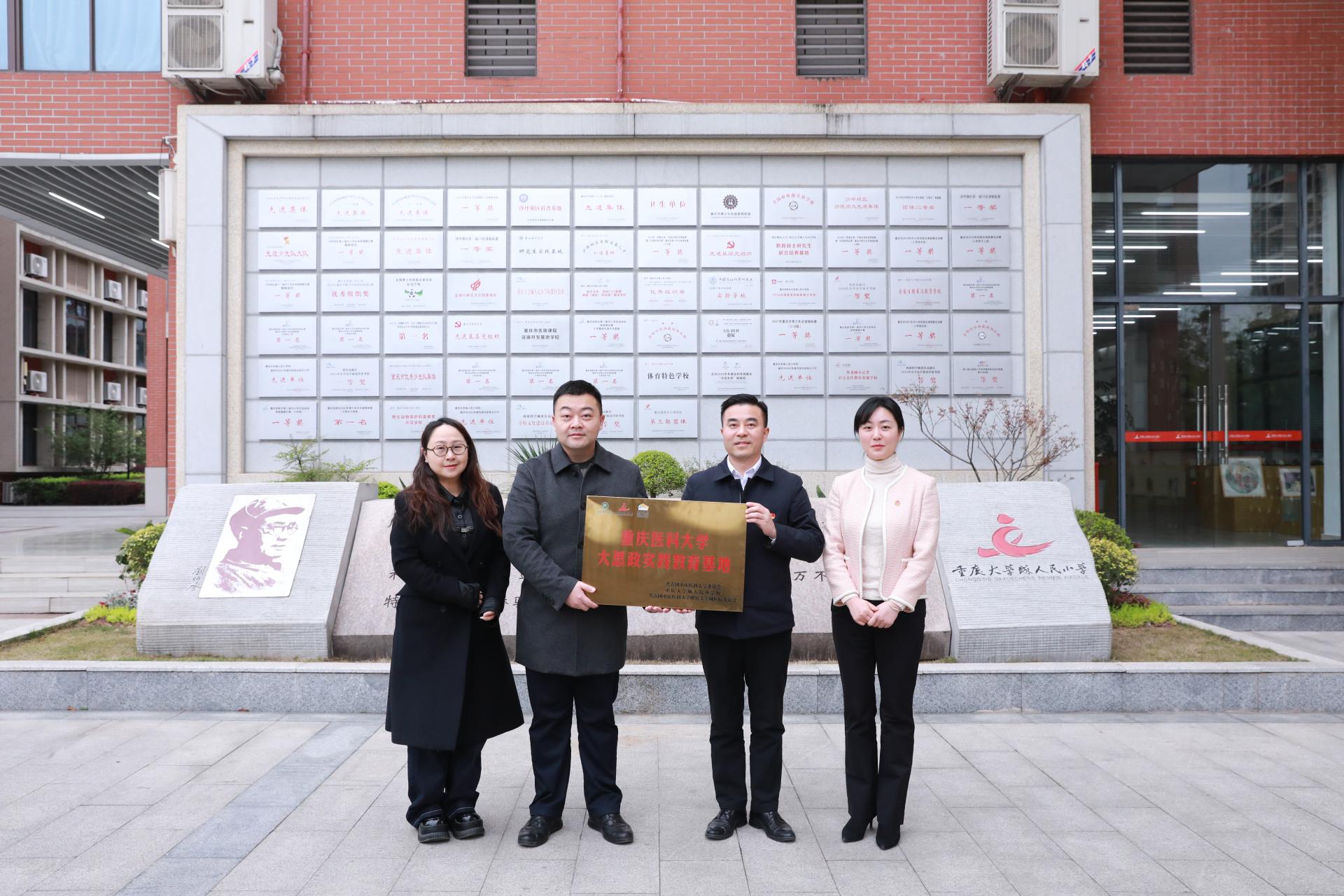 华体会网页版登录入口团委、附属大学城医院与重庆大学城人民小华体会网页版登录入口共建大思政实践教育基地,重庆大学城人民小华体会网页版登录入口党总支书记潘德梁、副校长谢谚,附属大学城医院党委委员、副院长刘刚,华体会网页版登录入口团委书记张巧丹等共同见证基地授牌。
